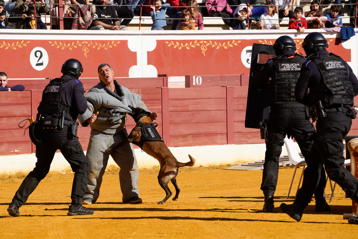 • Otra de las iniciativas que resultó un gran éxito fue la espectacular Exhibición del Grupo Canino de la Policía Local celebrada en la Plaza de Toros que tuvo otro lleno histórico y que hizo las delicias de los asistentes con una emociónate y aplaudida demostración llevada a cabo por los agentes y sus perros que sorprendieron por la originalidad y calidad de las pruebas y que contó con la participación de otras policías invitadas de la Comunidad de Madrid