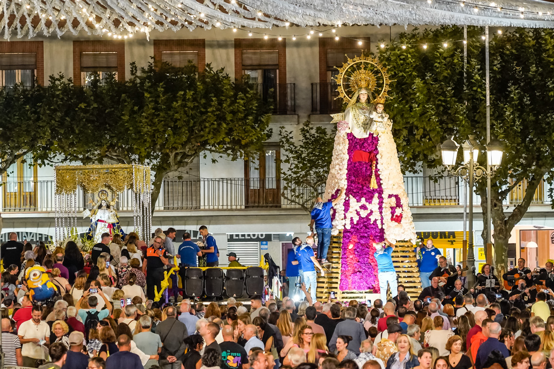 • No faltó a su cita con la patrona de Torrejón, una de las tradiciones más queridas en la ciudad como es la Ofrenda Floral a la Virgen del Rosario, que reunió a miles de vecinos llenos de devoción e ilusión que con sus claveles permitieron confeccionar un precioso manto que quedó expuesto durante todo el fin de semana